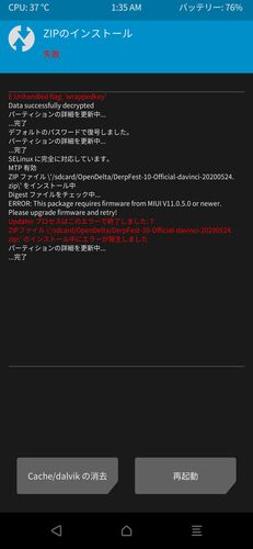 今回はちょっとアップデートに苦戦した。 なぜかと言えば、DerpFest最新版をインストールしようと思ったらTWRPがこんな事を言い始めたからだ↓ DerpFestの言い分 MIUI11.0.5.0からじゃないと入れられません。 と言っている。困ったことになった。 またあの使…