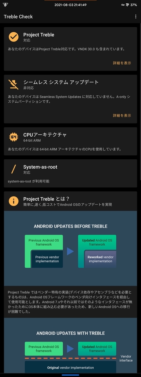 - 自分の持っている端末がProject Treble対応端末かどうか